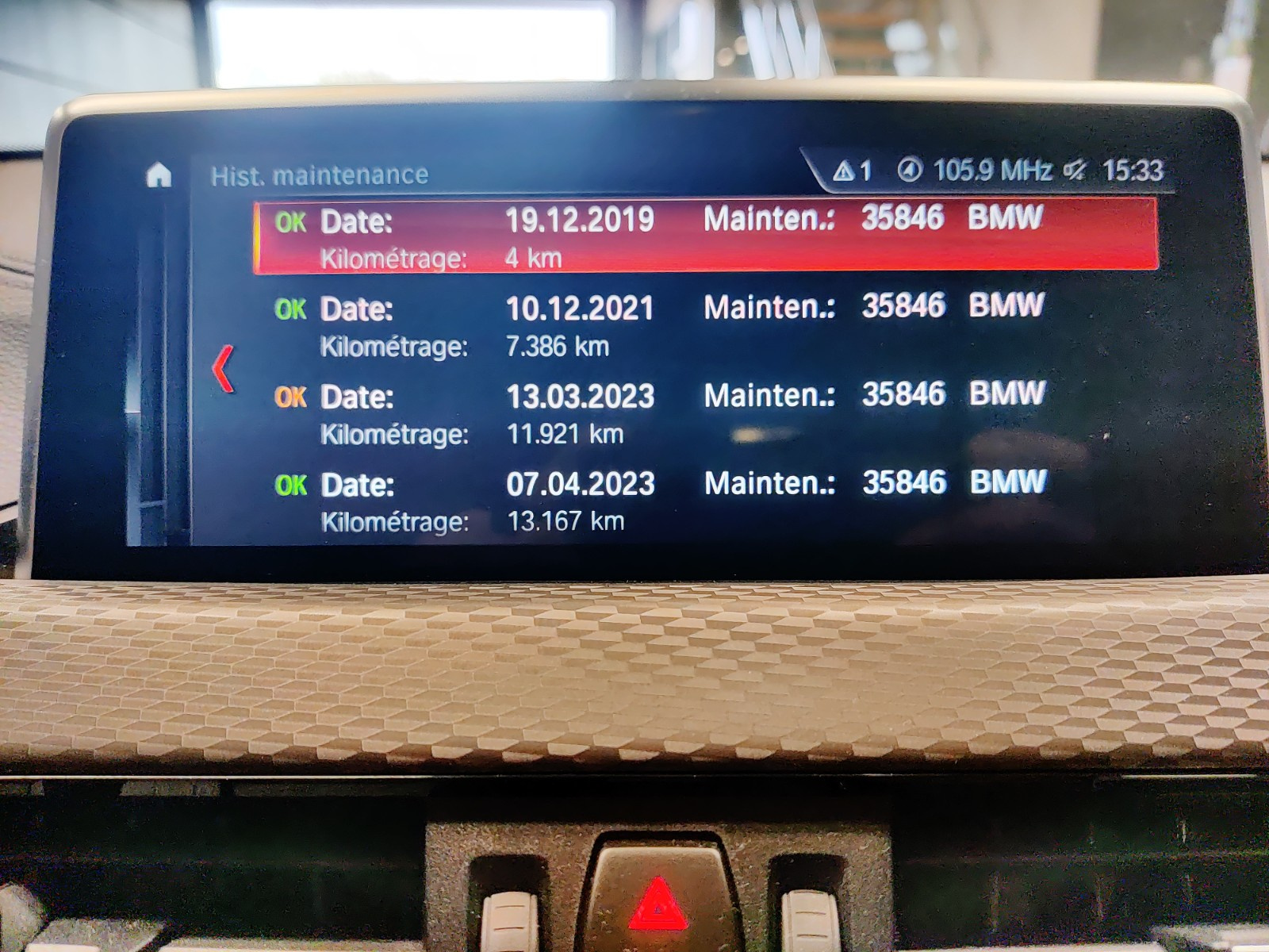 - Carnet d'entretien : Présent